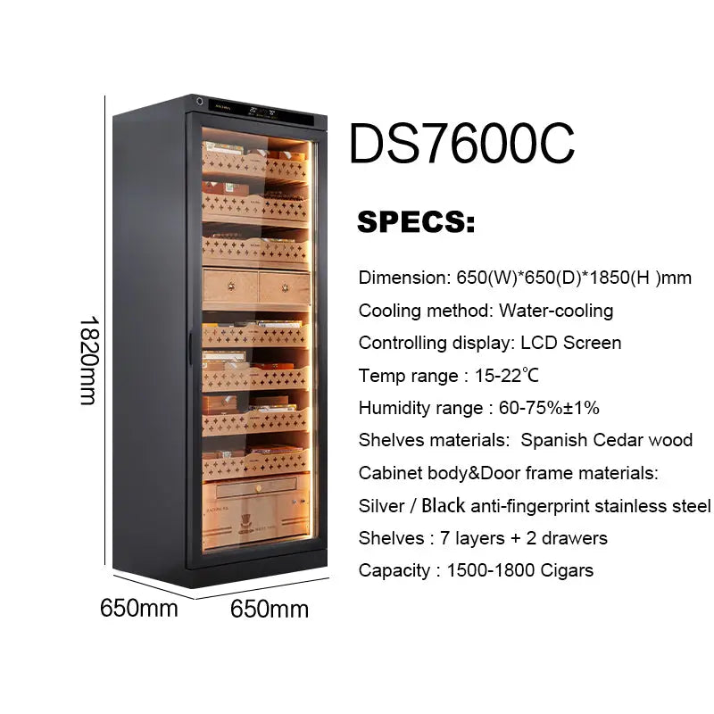Advanced Water-Cooling: Unlike traditional air-cooled units, the DS7600C utilizes water-cooling to maintain a "thermal anchor." This ensures virtually zero vibration and rock-solid temperature stability, which is essential for preserving the delicate oils within premium tobacco.